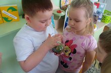 Ранее с детьми группы "Медвежонок" были посажены растения в небольшую баночку и плотно закрыли крышку. Спустя некоторое время мы наблюдаем как растения выросли настолько что уже некоторые ростки не помещаются в баночку. И поэтому открыли крышку.