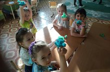 В 1-ой мл. группе "Зайчонок", малыши в ходе игровой ситуации учатся различать предметы по форме и цвету, а также формируют начальные представления о количестве предметов "много" и "мало".