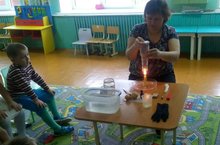 В старшей группе "Медвежонок" воспитатель Абрамова А.В. провела эксперимент "Почему свечка под стаканом не горит?", в ходе каторого детишки узнали, что для огня нужен кислород, а под стаканом его мало и свеча гаснет.