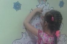Сегодня в старшей группе "Комарик" появилась раскраска. Но раскраска эта необычная: она огромная, в форме Новогодней ёлки и висит на стене. Дети с удовольствием рисуют и раскрашивают её в свободное от занятий время.
