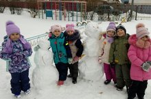 Сегодня прекрасный день и замечательно теплая погода. Можно вволю погулять, покататься с горки и поиграть в снежки. Дети старшей группы "Петушок" с удовольствием развлекались на участке и слепили чудесных снеговиков.