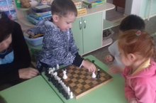 В старшей группе "Петушок" в свободное время каждый находит себе занятие по душе. Воспитатель Земскова Л.Н. Учит ребят игре в шахматы, показывает как ходят фигуры. Мальчишки с интересом слушают и пытаются сами играть в увлекательную игру.