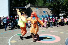 Сегодня в детском саду прошел праздник для детей, посвященный Международному дню защиты детей. На празднике принимали участие дети всех возрастов. В гости к ребятам пришли клоуны. Дети веселились, играли в различные игры, танцевали задорные танцы. Праздник завершился рисованием мелками на асфальте.