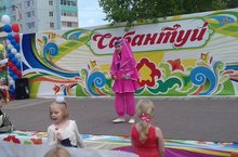Сотрудники детского сада приняли активное участие в проведении городского праздника «Сабантуй». Педагоги провели с детьми веселые игры на детской площадке: дети соревновались в перетягивании каната, разбивании горшков и беге с ложками.