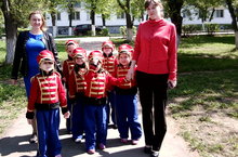 В городе идет подготовка к празднованию 71 годовщины Победы в великой Отечественной войне. Воспитанники старшей группы "Лягушонок" тоже принимают участие в праздничных мероприятиях. Наши "гусары" возвращаются с репетиции.