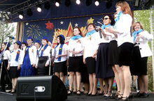 На сцене, установленной на площади ДК "Энергетик" состоялся караоке-конкурс «Песни Победы». В песенном конкурсе приняли участие 3 команды по 10 человек. Названия команд соответствуют тематике: Победа, Слава, Доблесть. В составе команды "Победа" участвовали музыкальные руководители нашего сад Бакеева Н.А. и Коженкова Л.И. На сцене было исполнено 15 песен, а зрители с удовольствием пели вместе с участниками.