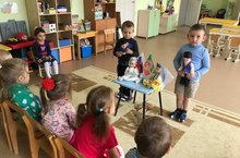 В старшей группе физинструктор Фаршатова А.Т. провела эстафету с обручами. Целью было познакомить ребят с гимнастическим обручем, научить с ним играть, показать способы владения обручем. Дети быстро овладели этим гимнастическим снарядом и с большим удовольствием участвовали в эстафете.