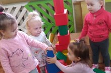 Дети первой младшей группы "А" очень любят сооружать постройки из крупного строительного материала. С помощью таких игр у наших малышей развивается пространственное мышление, логика и координация движений, а мелкая моторика, задействованная при игре с кубиками, помогает развивать речь и фантазию. Дети строят множество разнообразных вещей, но больше всего им нравиться строить дома, замки и башни.
