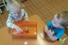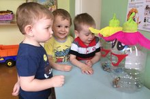 Малыши ясельной группы, только начинают познавать мир. В экспериментальной деятельности воспитатели развивают познавательную активность детей, закрепляя понятие "тонет-не тонет", расширяя знания детей о свойствах предметов, сделанных из бумаги, резины, дерева. -