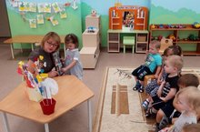 Привыкание малышей к детскому саду процесс очень непростой. Чтобы снизить напряжение и создать состояние благополучия в детском саду, воспитатель Клюкина В.Г. переключает внимание малышей на деятельность, благодаря которой дети получают новые открытия, незабываемые впечатления, радость от общения друг с другом.