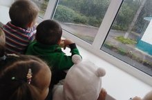 Деева И.В. предложила малышами группы «Ангелочки» понаблюдать из окна, как капли дождя стучат по окну и падают на землю, послушать шум дождя и определить, какой же идет дождик веселый или грустный. Был сделан вывод, что дождик идет грустный, так как капли падали медленно.