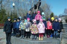В канун празника дня космонавтики воспитанники старшей группы «Классики» совершили увлекательное путешествие к архитектурной композиции, посвященной собаке – космонавту Чернушке.
