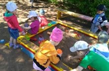 Малыши группы «Курносики» очень любят игры с песком. Погода установилась жаркая и самое время проводить время на улице! На прогулку мы выносим ведерочки, лопатки, различные формочки для игр с песком. Дети с удовольствием пекут куличи, строят маленькие башенки и дорожки для машин. Воспитатель, обогащая словарь детей, сопровождает их действия речью, побуждая детей к запоминанию и повторению знакомых и новых слов. Также игры с песком позволяют снять накопившееся напряжение, обогащают тактильный опыт. Песок массирует ручки и стопы детей.