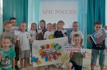 Сегодня в старшей логопедической группе "Классики" дети и родители совместно с педагогами провели акцию "Вместе против терроризма!", изготовив тематический плакат. Совместно с подготовительной группой "Жемчужинки" педагоги провели для детей беседу "Мы против терроризма ". Дети усвоили, что должен знать каждый при обнаружении подозрительного предмета, к чему следует быть готовым и что можно, и чего нельзя делать, ни при каких обстоятельствах, чтобы спасти свою жизнь и жизнь близких от рук террористов . В ходе просмотра мультфильма "Зина, Кеша и террористы" воспитанни усвоили полученные знания.