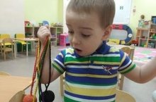 Красивое, хотя и странное, название - "детский сад" - придумал почти двести лет назад немецкий педагог Фридрих Фребель. Фребель был самым первым в истории экспертом в области образования, кто признал ценность детской игры и первым человеком, который создал образовательные материалы для детей. Первоначально было всего шесть видов образовательных материалов, разработанных Фребелем, сам автор поэтически называл их «дарами», позднее это количество возросло до 20 видов, благодаря последователям Фребеля. Первым даром является мяч. Каждый мяч-шар -- на ниточке. Играя с этими мячиками дети развивают умение различать цвета. Раскачивая шарик в разные стороны и соответственно приговаривая "вперед-назад", "вверх-вниз", "вправо-влево", мы знакомим детей с пространственными представлениями. Показывая шарик на ладони и пряча его, приговаривая при этом "Есть мячик -- нет мячика", мы знакомим ребят с утверждением и отрицанием. Все наши игры сопровождаются беседой, что способствует развитию речи