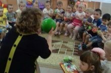 Любое занятие в младшей группе «Курносики» проходит в игровой занимательной форме. Сегодня на занятии по формированию элементарных математических представлений воспитатель создала такую игровую ситуацию, в ходе которой дети играли с большими и маленькими мячами.