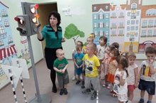 Дети второй младшей группы «Жемчужинки» в кабинете ПДД познакомились с работой светофора.
