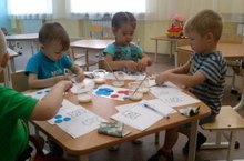 Во второй младшей группе «Жемчужинки» дети 3-4 лет начинают осваивать технику аппликации. Сегодня они не просто приклеивали большие и маленькие кружочки, а подарили зайчику и медвежонку мячики.