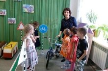 Воспитатель подготовительной группы «Солнышко» Лукина Л.В. провела с детьми беседу о правилах безопасного поведения на улице с велосипедом.
