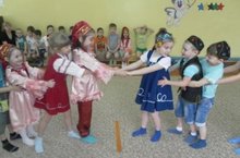 20.04.2015 г среди воспитанников из подготовительных групп прошёл физкультурный досуг на тему: «Ярмарка народных игр».