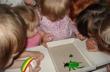 Во 2 младшей группе «Аленка» дети во время прогулки нашли «первенцев» весны божьих коровок. На изучение их занесли в группу.
