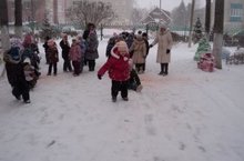 В новогодние праздники воспитанники старших, подготовительных групп вместе с родителями и воспитателями посетили снежный городок. Воспитатели организовали для ребят подвижные игры- забавы. Радости малышей не было предела.