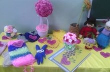 В старшей группе «Солнышко» к празднику Матери воспитатель Спиридонова О.В. организовала выставку работ, сделанных руками мам.