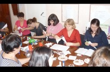 Воспитатель старшей группы Клюкина В.Г. провела с детьми аппликацию «Украшение тюбетейки».
