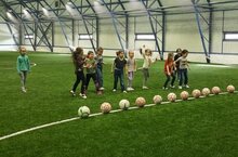Экскурсия в "Спортивную школу "Барс" 11.04.2022 Тренер Бикмеев Ринат Раисович провел для дошкольников, как для настоящих футболистов, разминку с различными видами бега, ходьбы, упражнений для рук и ног.