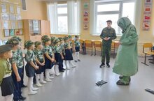 Уроки безопасности 17.02.2022 В преддверии праздника День защитника Отечества воспитанники подготовительных групп «Классики» и «Почемучки» посетили кабинет основ безопасности жизнедеятельности (ОБЖ) в ЗСОШ№7.