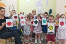 Воспитанники группы «Ангелочки» с педагогом Деевой И.В. решили порадовать Деда Мороза и нарядили елочку, а новогодние игрушки нарисовали сами.