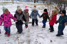 В группе "Ангелочки" прошла снежная прогулка, на которой дети играли в снежки и даже слепили снеговика.