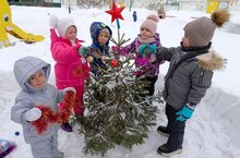 Вот и в нашем детском саду полным ходом идет подготовка к новогодним праздникам. Мы вместе с детьми украсили ёлочку на нашем участке детского сада, снежинками, новогодними игрушками. Самую большую радость и удовольствие дети получили, когда вокруг ёлочки водили хоровод.
