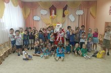 День рождение Деда Мороза прошёл сегодня в детском саду "Зернышко". Под задорные игры и танцы мы повеселили нашего деда мороза и спели ему каравай. -