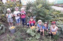 Дети вместе с воспитателями посадили семена, ухаживали за рассадой, пололи, поливали, привязывали плети огурцов и, конечно же, наблюдали за ростом растений. И вот наконец-то наступил день сбора урожая.