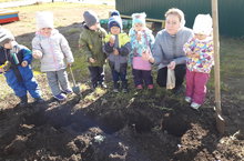Сегодня самые маленькие детишки нашего сада вместе с воспитателем посадили тюльпаны. -