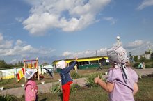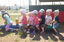 А на прогулке наши детишки прокатились на «паровозике дружбы».
