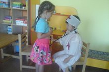 Другими словами, всем взрослым есть повод поздравить и поблагодарить представителей одной из самых гуманных профессий, а с ребятишками в нашем детском саду организовать одну из любимых сюжетно - ролевых игр "Больница". -