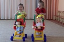 Наши девочки очень любят катать своих «малышек» в колясках. -