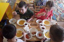 Международный день супа отмечают традиционным застольем. Главное блюдо на столе в этот праздник – суп. Ребята группы «Колосок» тоже решили своеобразно отметить этот необычный день и подсмотреть, как же суп готовит повар. Узнали, что для хорошего бульона необходимо чистая вода, а чтобы суп получился наваристым - картофель, лук, морковь и возможно даже крупа. По возвращении в группу всем захотелось попробовать "солнечный" гороховый суп.