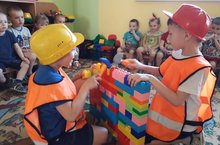 Сегодня в рамках месячника посвященного Всемирному дню охраны труда воспитанники старшей группы играли в дидактическую игру «Правила безопасности на стройке» (демонстрационная игра детьми старшей группы о том какие соблюдать правила при строительстве малышам), тем самым показав и объяснив самым маленьким ребятам что очень важно соблюдать меры безопасности. -