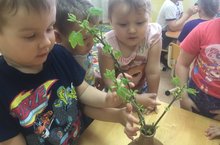 Мы решили с прогулки принести ветки клёна. Поставили их в вазу с водой и стали наблюдать. Дети обращали внимание на то, как развиваются ветки в тёплом помещении, вспомнили, как ветки выглядели, когда их только принесли с улицы и поставили в воду. Замечали всё: как вначале набухают почки, как появляются, уточняли их форму, размер, а затем распускаются листочки.