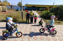 С самых ранних лет ребёнок должен иметь первые познания правил дорожного движения. В нашем детском саду регулярно проводится работа с детьми по формированию представлений о безопасности дорожного движения и изучению ПДД. Сегодня на прогулке наши дошколята познакомились с правилами безопасной езды на велосипеде и показали свои знания в сюжетно-ролевой игре «Мы велосипедисты».