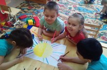 Ежедневно воспитанники группы "Колосок" закрепляют материал о временах года и 12 календарных месяцах. Ребятишки хорошо знают, что сейчас весна, но глядя за окно, с трудом верят в это: кругом снег, да и зимний гардероб мало напоминает о весне. Вот и решили мы с ребятишками позвать Весну-красну, поторопить ее, помочь ей найти дорогу к нам как можно скорей. Ребята охотно разучили несколько коротеньких закличек, а потом с радостью и надеждой несколько раз на день хором повторяли их. А ещё ребята нарисовали большое солнышко. Может, запоздалая весна увидит его и поскорей доберется до нас! -