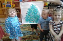Сегодня наши малыши совместно с воспитателем выполняли коллективную работу по рисованию «Ёлочка-красавица».