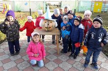 Сегодня к нашим ребяткам на прогулку пришёл очень необычный гость – Незнайка, а необычным он был, потому что был вырезан из тыквы, которую вырастили в нашем огороде сами дети. Дети с огромным удовольствием рассматривали гостя, пели ему песни. -