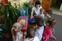 Весной начинается работа в огороде. В группе воспитатели проводят беседы, о том для чего сажаются растения, как за ними ухаживают, что бы они росли здоровыми. А на прогулке ребята помогают сотрудникам посадить готовые саженцы и ухаживают за ними.