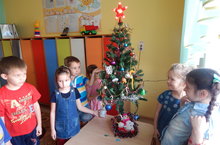 Радостно, весело, с праздничным настроением встретили Новый год дети 2 младшей группы и средней групп. Дети в нарядных карнавальных костюмах читали стихи, пели песни, играли в игры, веселились, радовались празднику. Ребятишки показали сказку «Как Колобок шел к Деду Морозу». Праздник получился нарядный, веселый. Все дети и родители остались довольны от проведенного праздника. -