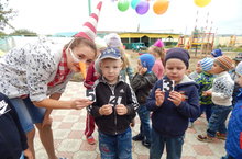 1 сентября в д/с “Зернышко” под руководством музыкального руководителя Емиловой Р.Н. прошло мероприятие посвященное Дню знаний. Веселая, танцевальная музыка встречала всех детей на улице детского сада. Дети старших и подготовительных групп открыли праздник веселыми песнями. Сюрпризным моментом этого мероприятия стал сказочный персонаж Буратино. Герои мультфильма " Золотой ключик" провел с детьми веселые игры, загадки, а в заключение праздника Буратино с детьми станцевал флэш-моб.