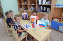 Ежегодно 22 августа в России отмечается День государственного флага Российской Федерации. Сегодня в нашем детском саду прошли мероприятия, посвященные Дню рождения Российского флага: проведены беседа «Флаг и его значение»; дидактические игры «Собери флаг России», «Найди флаг Российской Федерации». Дети научились отличать и находить Российский флаг среди множества других флагов, получили и закрепили представления о назначении государственной символике, узнали о символическом значении цветов флага нашей Родины, с огромным интересом рассматривали и рисовали Российский флаг.